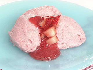 いちごと生クリームが二層に分離させないポイントは、それぞれのとろみ加減を揃えて(しっかりとろみをつける)から混ぜ合わせること。