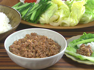 牛肉みそはとろみをつけたほうが巻き易くなります。