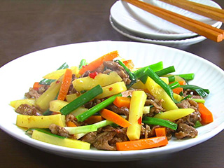 じゃが芋やにんじんを先に加熱しておくと、炒め時間が短縮でき失敗の心配がありません。