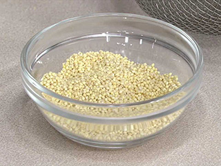 桃太郎のお話しに登場する「きびだんご」でおなじみのきび。もち性のきびは、軽い苦みと甘みがあり、粘りが強く、冷めてももちもち感が残る。穀物の中でいちばんカロリーが低く、良質のミネラル分とビタミンB群が豊富で、黄色い色素はポリフェノール。白米に混ぜて炊くほか、ゆでていろいろな料理に使える。