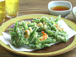 青じそを細切りにして、いんげんやえびにからんでまとめやすくなります。