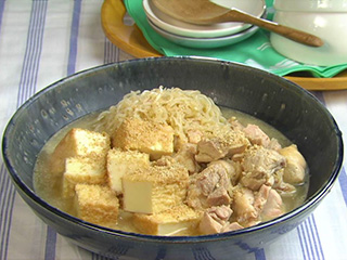 すりごまは最後に加えて煮汁を吸わせ、鶏肉や厚揚げにからめること。