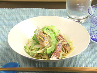 あじとゴーヤがからんで一緒に食べられるように、ゴーヤはなるべく薄くスライスします。