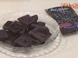 ブラジル、アマゾン原産のヤシ科の植物。見た目はブルーベリーに似た果実を食用にする。ポリフェノールを多く含み、鉄分や食物繊維も豊富。果実をすりつぶし、ペースト状にパックした製品(パルプ)の冷凍が出回っている。