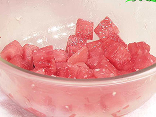 ・一口大にカットしたすいかに塩麹をまぶして