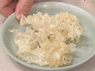 黒木くらげと同様にきのこの一種。低カロリーで食物繊維が豊富で、美肌食材として人気が高い。プルプルした食感があり、甘く煮てデザートに使う。また、あえものやスープなどの料理にも用いる。
