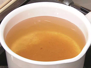 材料・作り方(作りやすい分量) 中ざら糖125gと水5カップを鍋に入れ、火にかけて煮溶かす。