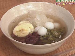 シロップで作るシャリシャリ氷をかけると程よい冷たさに。
