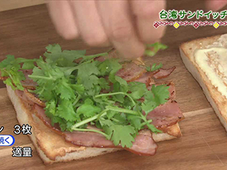 台湾サンドイッチは甘いマヨソースをパンにぬるのがお約束。