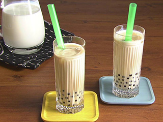キャッサバという植物の根茎からとったでんぷんを球状に丸めて作られる。白いものはタピオカパールともいい、ブラックタピオカはカラメルで着色したもの。粒は大小あり、大粒のほうがより食感が楽しめる。