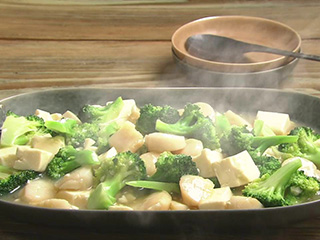 帆立や豆腐の食感と合うように、ブロッコリーをやわらかめに蒸しゆでにしておくことがポイント。
