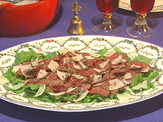 タリアータはイタリア語で「薄く切った」という意味、ステーキ肉を薄くスライスして盛りつけるので、ローストビーフよりも手軽でパーティの人数が増えてもOKなのが嬉しいところ!
