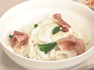かぶのサラダなますの生ハムは食べる直前にあえること。