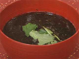 もう一品の「のり吸い」ののりは細かくちぎり、煮汁に完全に煮溶かしてから調味すること。