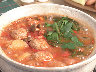 ペンネ160gを「トマトペンネ」と同様にゆで、残した煮汁(約2カップ)に加え、パルメザンチーズ(おろす)適量をかける。土鍋のまま250℃に予熱したオーブンで10分ほど焼く(オーブン不可の土鍋の場合は、耐熱の器に移してからオーブンで焼く)。