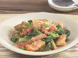 揚げだらと小松菜のキムチあえ