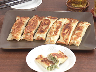 肉だねをのせて包むというよりも上下をかぶせて、両端を押さえておく感じです。