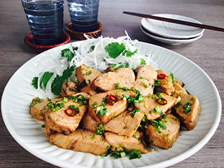 かつおは皮つきのものでOK、この季節は脂が少ないので揚げてもさっぱりいただけます。