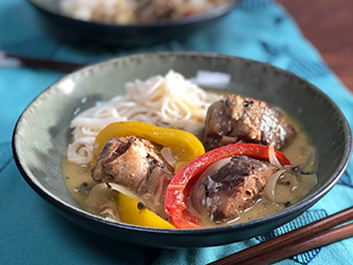さばのみそ煮とココナッツミルクは相性がとてもよく合います。喉ごしのよいそうめんのほか白いごはんにかけてもOK。