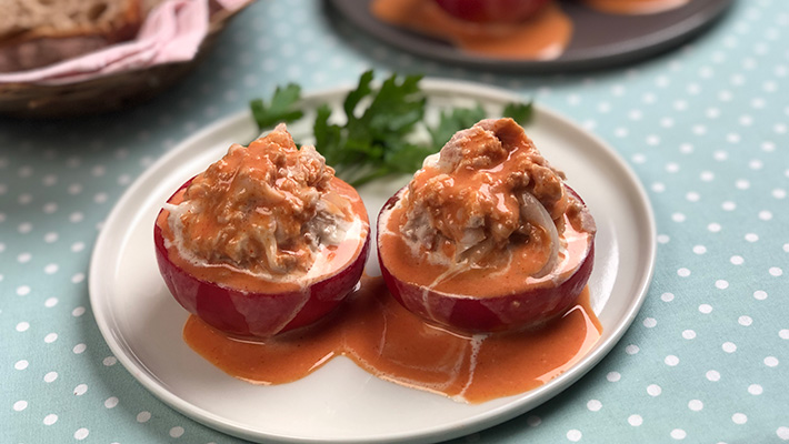 キュートな見栄えの一皿、出来れば器も冷やして、食べるときにツナマヨ、ソースを順にのせて仕上げましょう。