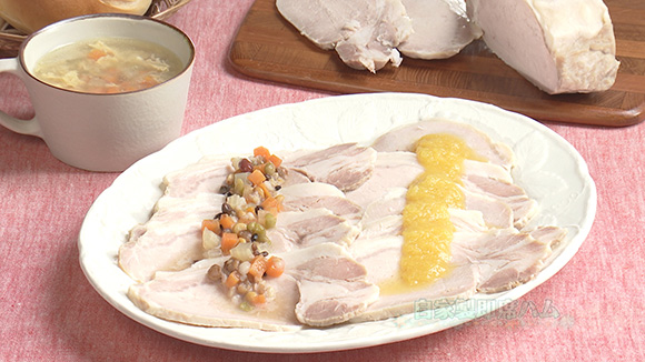 豚ロースの塊肉の重量に対し、塩は肉の重さの2.5%、きび砂糖は肉の重さの1%を用意する。きび砂糖を加えることでうまみが増し、しっとりと仕上がる。