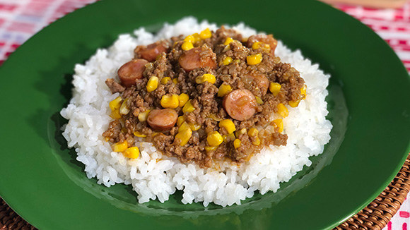 とうもろこしとソーセージが味だし役です(彩りも)。