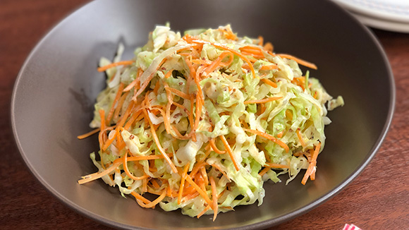 コールスローは先に作って味をなじませておきましょう(冷蔵庫で2~3日保存可能なので、作っておくと便利)。