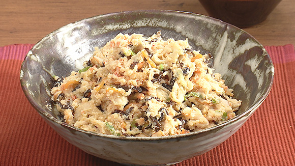 淡泊なおからには具を多数合わせるのがおいしくするコツ、具とおからの割合1:1もしくは具の割合が多い方がおいしい!