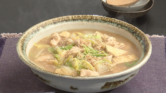 白菜のやわらかさがおいしいのモト、葉元がやわらかくなってから葉先を加えて仕上げましょう。