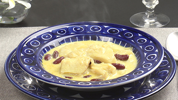 たらは甘塩を選び、皮はひいて取り除き、熱湯をかけることが臭みを押さえるポイント。