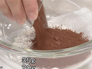 ココアパウダーはダマになりやすいので、ふるい入れる粉類によく混ぜ合わせておきます。