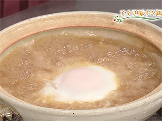 具を食べたら、ゆでうどん80gを入れ、弱火で2~3分煮る。卵1個を割り入れ、ふたをして卵が半熟になるまで煮る。