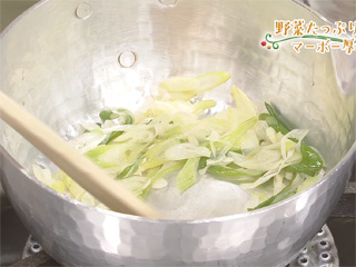 スープは長ねぎがしんなりするまでじっくり炒めることがポイント(ねぎは青い部分も使ってOK)。