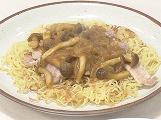 カリっと焼いた中華麺にのせて焼きそばにしてもおいしい