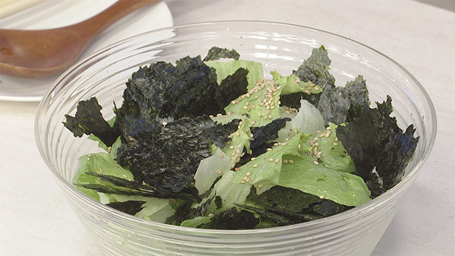 レタスにまず、ごま油をからめること(水っぽくならないコツ)