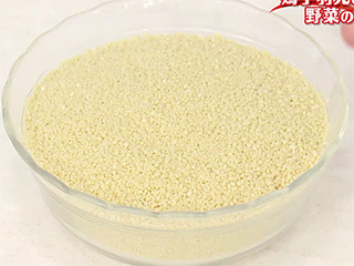 硬質小麦の一種、デュラム小麦の粗びき粉に水を含ませ、粒状に丸めたもの。世界最小のパスタとも呼ばれ、プチッとした独特の食感が特徴。煮ものやスープなどに混ぜて食べるほか、サラダにも使われる。