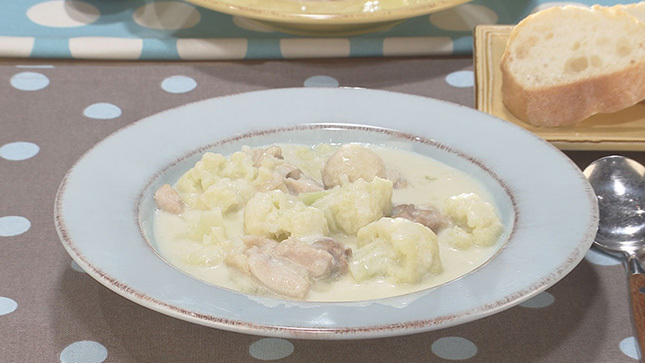 鶏肉には焼き色をつけず、全体を白く仕上げます