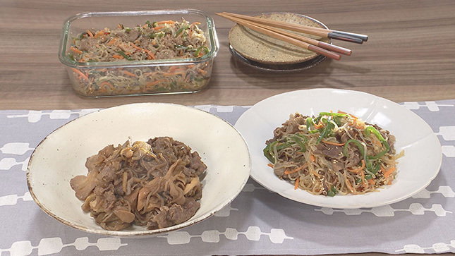 本来は春雨を使うチャプチェですが、温めなおしてもおいしいしらたきを使います