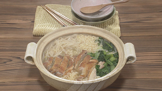 インスタントラーメンで作りますが、鶏肉も野菜もたっぷりで、夕ご飯にオススメです