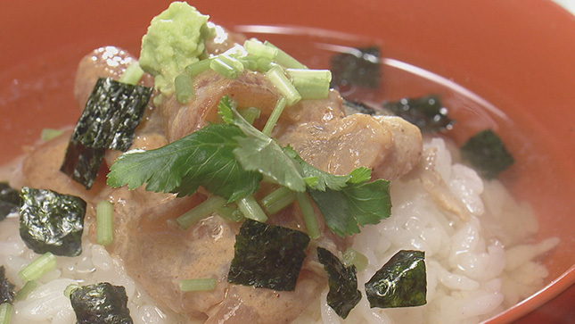 1杯目はそのままごはんにのせて、2杯目は煎茶のだし汁をかけて、2段階でお楽しみください!