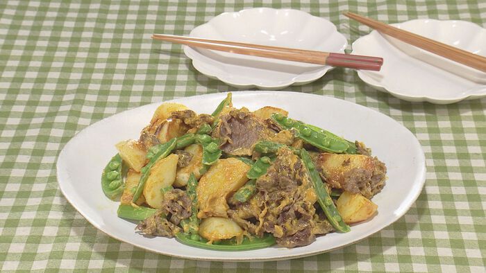 牛肉、じゃが芋、スナップえんどうの温サラダ