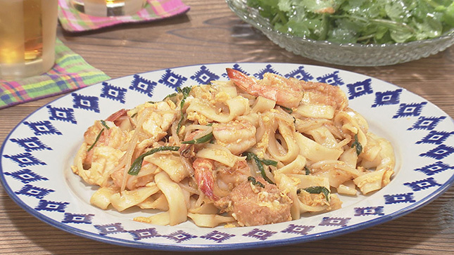 センレックは、タイの米粉めんの一種。太さによって呼び名が変わり、約3㎜幅の平めんのこと。日本ではスーパーやエスニック食材店、ネットで乾めんが手に入る。今回は、幅の広いゆできしめんを使用。