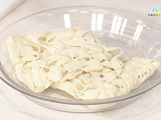 きしめんは炒める前に電子レンジにかけてほぐすと切れにくくなります