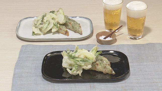 アスパラと新玉ねぎのかき揚げ&青のりちくわ天