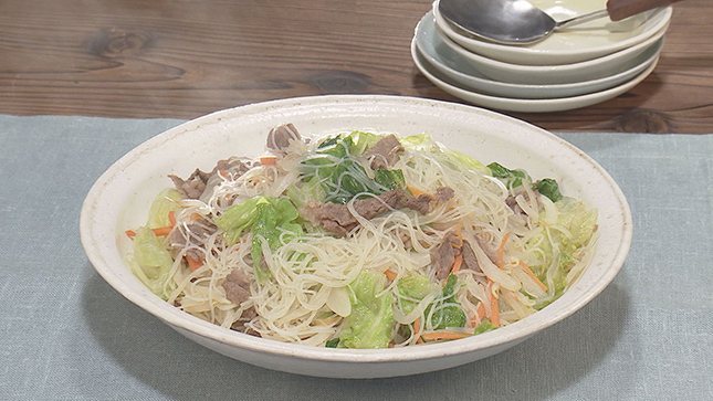 ビーフンのもどし方はメーカーによって異なるので、袋の表示通りにもどしてください