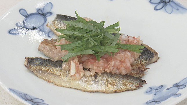 梅だれに加える新しょうがは、長くおくと水分が出てしまうので、いわしを焼く直前に混ぜるとちょうど良いです