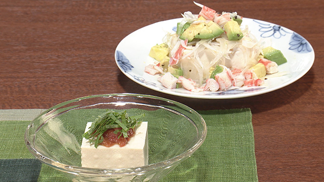 ▼アボカドとかにかまの塩冷ややっこ(4人分)