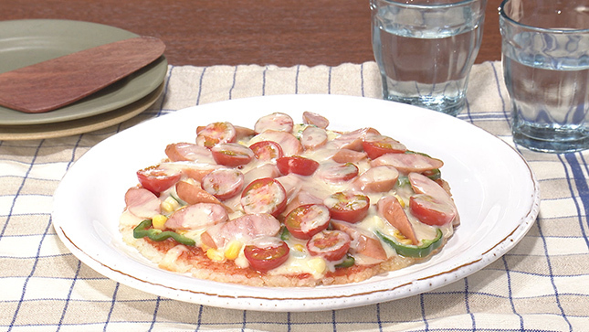 ピッツァ生地の代わりに、ごはんを土台にして作ります。旬のとうもろこしを使って、夏ならでは味わいに!