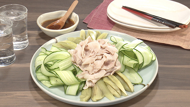 雲白肉は本来、豚のかたまり肉をゆでて薄切りにしますが、今回は手軽にしゃぶしゃぶ用の豚バラ肉で作ります