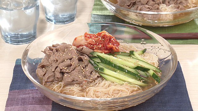 牛肉をゆでた汁を使って、すっきりとしてコクのあるかけつゆに仕上げます